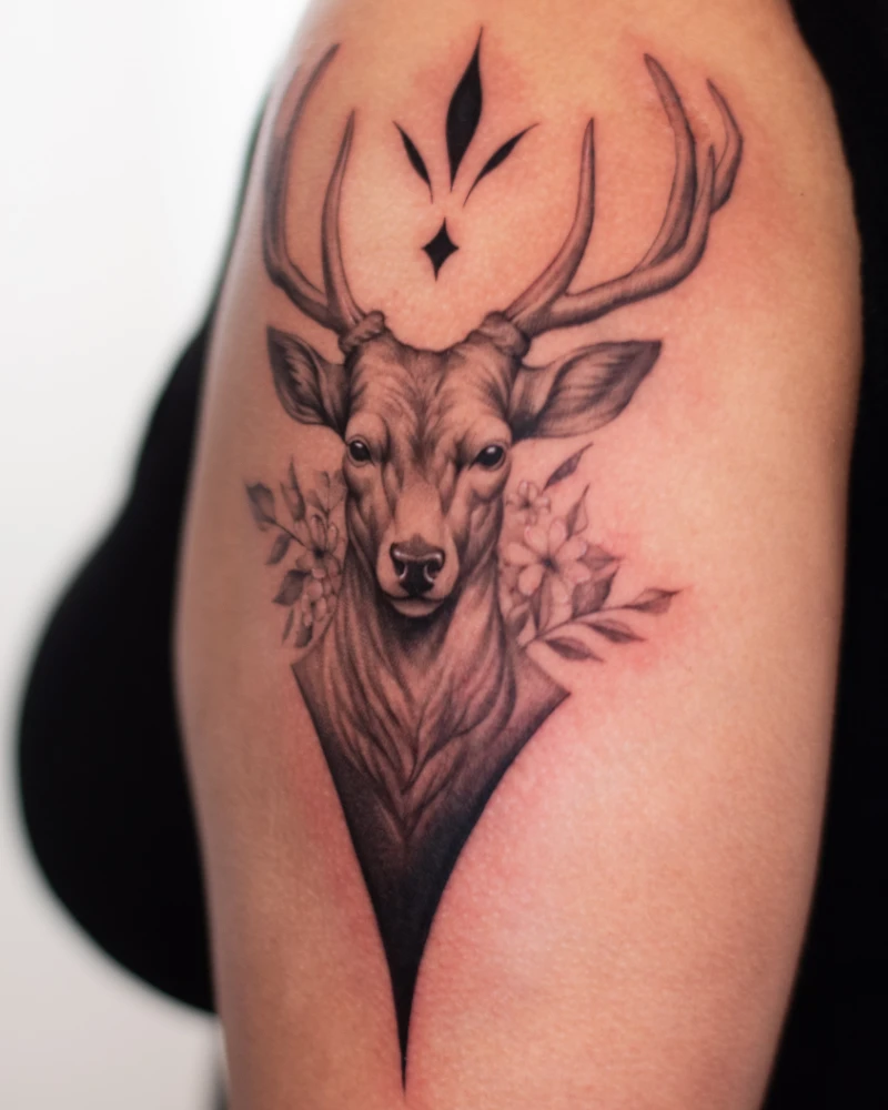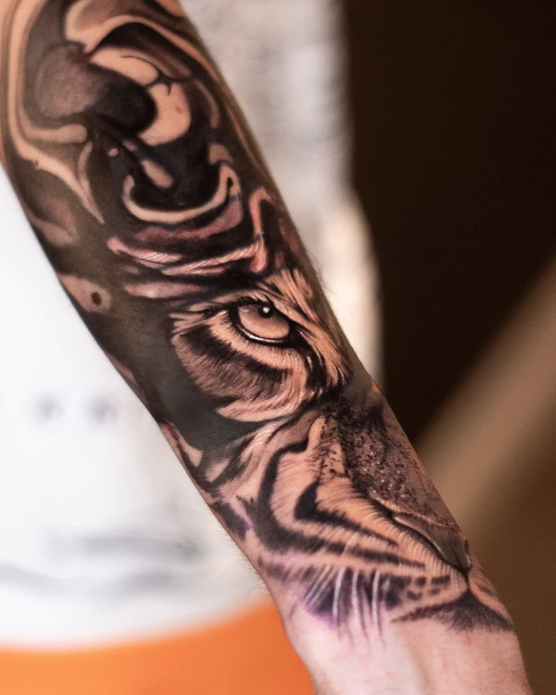 El Realismo se distingue por su ausencia de líneas de contorno marcadas. A diferencia de otros estilos más gráficos, aquí no se dibuja a base de líneas, sino que la forma surge del manejo cuidadoso de las sombras y los matices. El tatuador construye la imagen como si la estuviera modelando, generando profundidad, textura y movimiento.